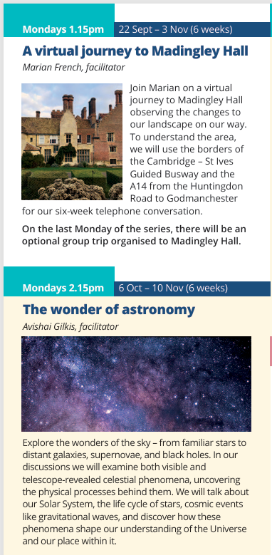 Below you will find details of our September / November 2025 topics.
