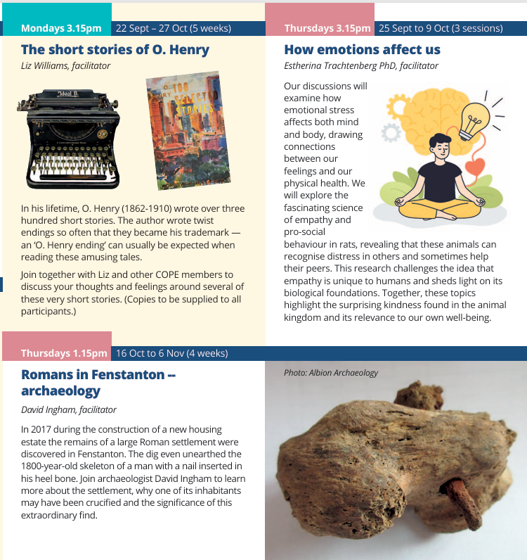 We send out a leaflet with details to COPE members in advance so they can register for courses of interest to them.